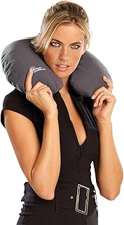 newgen medicals Nackenkissen aufblasbar: Aufblasbares Nackenhörnchen mit hochwertigem Fleece-Bezug, dunkelgrau (Reise Nackenkissen aufblasbar)