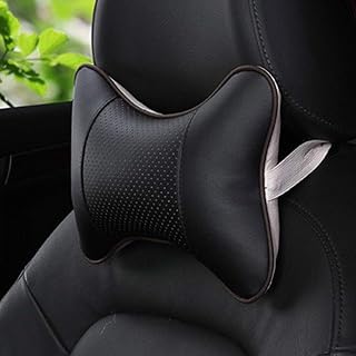 Dogggy 1pcs Auto Nackenkissen für schwarze Auto Kopfstütze PU-Leder Nackenkissen mit Verstellbarer Schnalle Band für Zuhause Auto Reisebüro