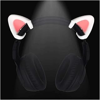 sciuU Kitty Ears Dekorativ für Kopfhörer, Silikon Katzenohren Dekoration Kompatibel mit HypreX Cloud/Cloud II/Cloud Flight etc, Installation mit verstellbaren Befestigungsgurten, Weiß & Pink