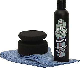 CLEANEXTREME WACHS 3 Autowachs Set - mit 200 ml Auto Carnaubawachs, Versiegelungs-Schwamm, Mikrofaser-Poliertuch
