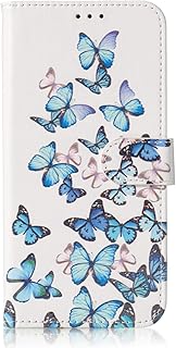 Karomenic PU Leder Hülle kompatibel mit Huawei P30 Lite Marmor Blume Muster Handyhülle Brieftasche Silikon TPU Schutzhülle Klapphülle Ledertasche Wallet Flip Case Etui,Blauer Schmetterling