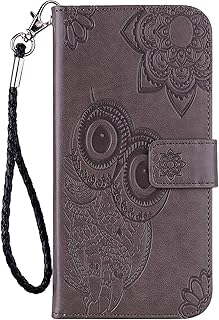 Karomenic PU Leder Hülle kompatibel mit Huawei P10 Lite Prägung Eule Muster Handyhülle Brieftasche TPU Silikon Schutzhülle Klapphülle Magnet Ledertasche Flip Case Etui,Grau