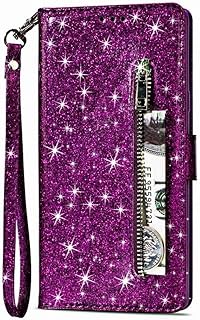 Karomenic kompatibel mit Huawei P30 Pro PU Leder Hülle Reißverschluss Glänzend Glitzer Handyhülle Brieftasche Silikon Strass Schutzhülle Klapphülle Magnet Ledertasche Flip Case Etui,Lila