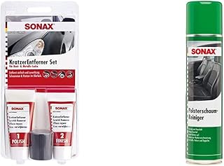SONAX KratzerEntfernerSet Lack zur manuellen Beseitigung von lokalen Kratzern und Schrammen aus Klarlacken & PolsterSchaumReiniger (400 ml) entfernt fasertief selbst hartnäckige Verschmutzungen