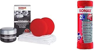 SONAX PremiumClass Carnauba Care (200 ml) inkl. 2x Schwamm und 1x MicrofaserTuch, Hartwachs für alle neuen und grundgereinigten Lacke & MicrofaserTücher Außen - der Lackpflegeprofi (2 Stück)