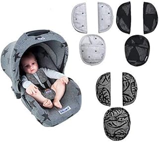 Original DOOKY PADS ** 3er Set gefütterte Gurtpolster/Schutzpolster ** Für AutokinderSitz/Kinderwagen/Buggy z.b. Maxi Cosi, Cybex, Römer etc. (Light Grey Crowns)